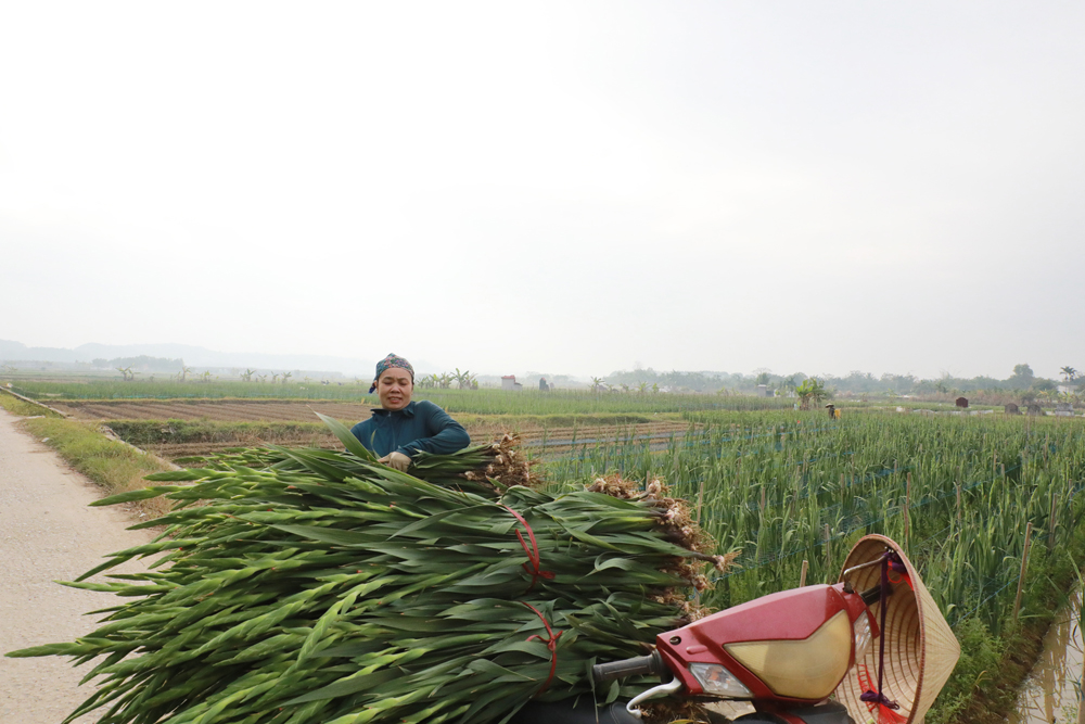 Trước đây, kinh tế gia đình bà Vũ Thị Phẩy khá chật vật, chủ yếu dựa vào trồng lúa và làm thuê theo mùa vụ. Từ khi được Chi hội Phụ nữ thôn vận động tham gia tổ hợp tác trồng hoa, cuộc sống gia đình bà đã thay đổi rõ rệt. Bà dành 5 sào để trồng lay ơn, mỗi vụ kéo dài chỉ từ 2,5 đến 3 tháng nhưng mang lại thu nhập 60 – 70 triệu đồng. Nhờ thị trường ổn định và có đầu mối thu mua ngay tại thôn, bà không phải mang sản phẩm đi xa, tiết kiệm thời gian và chi phí vận chuyển. "Ngày trước tôi chỉ mong đủ ăn. Từ khi trồng hoa, kinh tế gia đình khấm khá hơn. Hoa dễ chăm, phù hợp với đất, lại được chị em trong tổ hợp tác cùng hỗ trợ về kỹ thuật nên hiệu quả rất rõ. Tôi rất phấn khởi vì cây hoa đã giúp gia đình ổn định thu nhập và có điều kiện nuôi con cái học hành tốt hơn”, bà Phẩy bày tỏ.