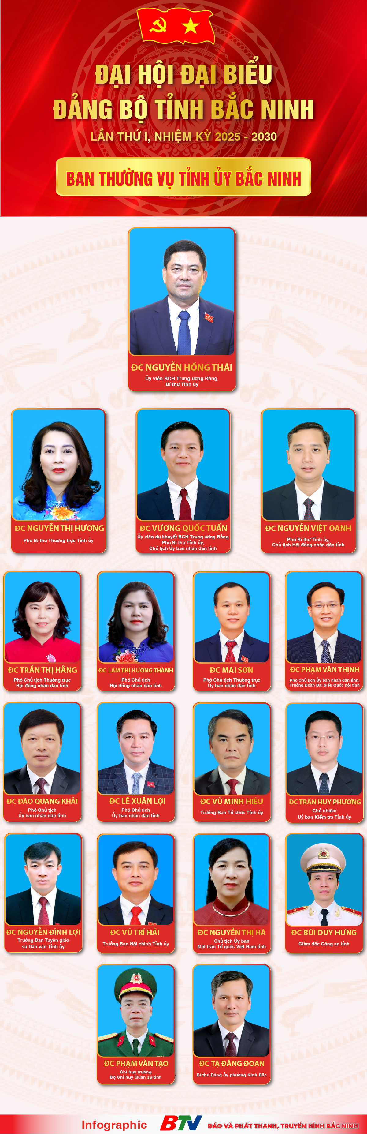 Báo và Phát thanh, Truyền hình Bắc Ninh xin trân trọng giới thiệu các đồng chí Uỷ viên Ban Thường vụ Tỉnh uỷ Bắc Ninh, nhiệm kỳ 2025 - 2030