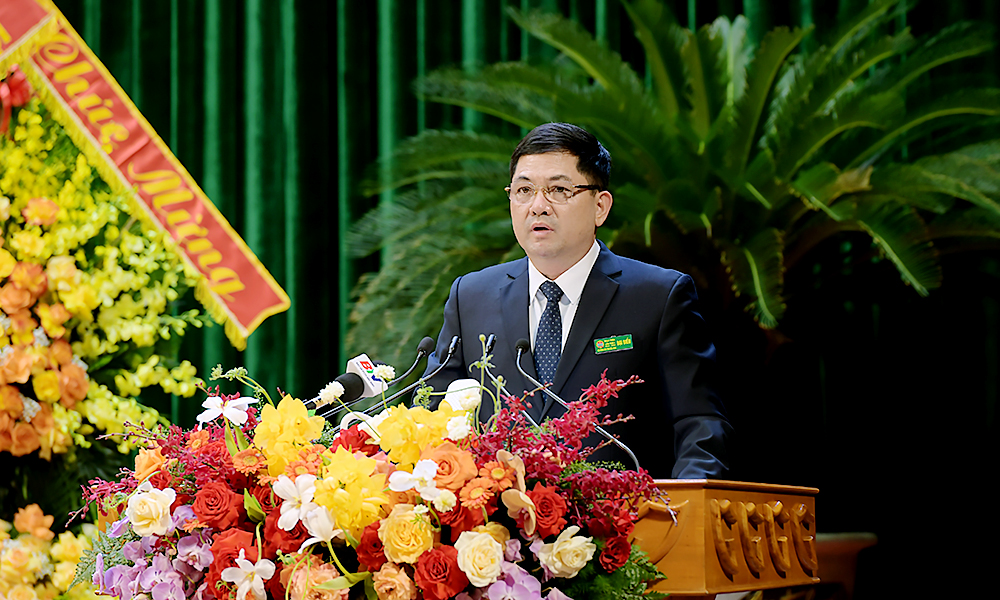 Đồng chí Nguyễn Hồng Thái, Ủy viên Trung ương Đảng, Bí thư Tỉnh ủy phát biểu chỉ đạo tại Đại hội.