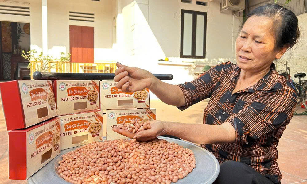 Nhiều năm qua, sản phẩm kẹo lạc của gia đình bà Giáp Thị Kiểm, thôn Tân Thể trở thành địa chỉ quen thuộc với người tiêu dùng nhờ hương vị thơm ngon, đậm đà. Đây được xem là mô hình tiêu biểu trong phát triển sản phẩm OCOP gắn với lợi thế bản địa.